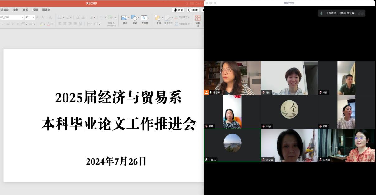 2024年7月26日,ok138cn太阳集团召开经贸系教研活动,会议主题为“2025届经贸系毕业论文工作推进会”,经贸系全体教师参加会议,会议由经贸系系主任曹子瑛主持。