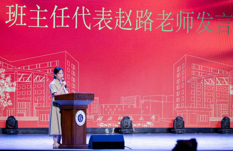 赵路作为毕业班班主任代表发言。她表达了对毕业生的美好祝愿与嘱托,希望同学们能够在未来坚定理想信念,明确人生方向,坚守价值准则,笃思慎行,奔赴美好人生。