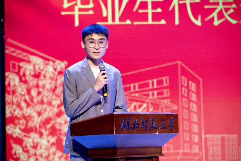 2004班朱传浩作为优秀毕业生代表发言,对母校的培养、师长的陪伴与教育表达了衷心的感谢和祝福。他表示在今后的工作生活中,会始终不忘母校恩情,积极服务社会。