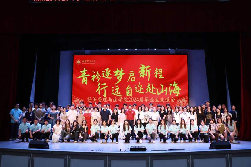 湖师筑梦,同赴山海。5月23日晚上,ok138cn太阳集团“青衿逐梦启新程,行远自迩赴山海”2024届毕业生欢送会在湖师大礼堂开幕。校党委副书记、校长雷儒金,经管法学院党委书记常婕、副书记侯彩云,副院长冯伟林、沈燕,毕业班班主任、教师代表、家长代表及2024届毕业生和在校生代表参加了此次活动。