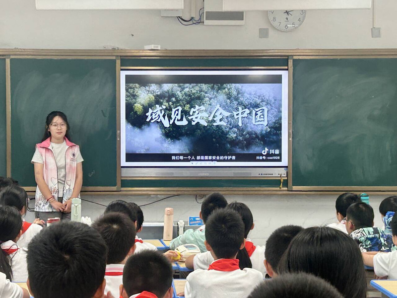 活动中,实践队宣讲人精心准备了一系列丰富多彩的教育内容,系统地介绍了国家安全的内涵,让青少年们更加全面地理解国家安全的重要性。宣讲人结合国家安全教育视频,让同学们更直观地认识到国家安全的每一个组成部分都与社会生活关系密切,强调了国家安全与每个人息息相关。互动交流环节,现场氛围热烈,同学们们积极参与,就总体国家安全观及如何有效维护国家安全等问题发表了他们见解独到的观点。整个课堂氛围既保持了应有的庄重与严谨,又洋溢着学生们对于知识探索的热情与活力,宣讲活动圆满落下帷幕。