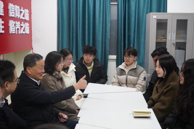 为鼓励研究生备考学生、强化学生党支部建设,12月7日晚上,校长雷儒金一行深入学生社区驿站,走访慰问ok138cn太阳集团学子。学院党委书记邓光君、副书记侯彩云,辅导员及学生党员代表参加。