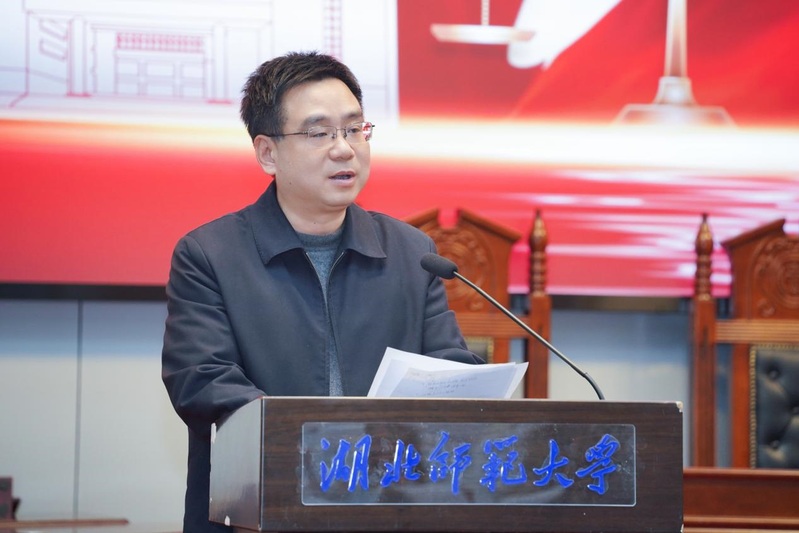 雷儒金在致辞中指出,模拟法庭实践教学活动是深入贯彻落实习近平法治思想的生动实践,也是推进法治育人,弘扬宪法精神,引导大家投身法治实践的鲜活课堂。他对长期关心、支持学校法学专业建设的黄石市政法机关及各界专家表示衷心感谢,并表示在国家“十五五”的征程上,太阳集团将持续锚定“争博点、强特色、创一流、促转型”的发展目标,系统推进学校教育、科技、人才体制机制一体化改革,培养新时代卓越法治人才,传递法治的精神和思辨的力量。